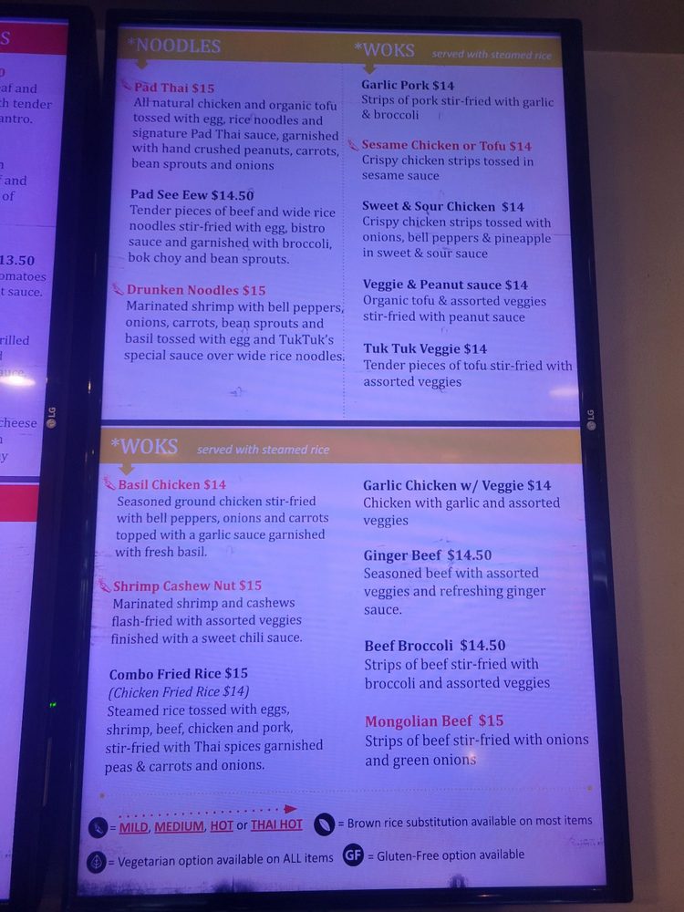 Welcome to Tuk Tuk Thai Grill, where the vibrant flavors of Thailand come to life in a warm, inviting atmosphere. Conveniently located at 8000 E Quincy Ave, Denver, this delightful eatery offers a diverse menu that promises to satisfy all palates, with an impressive selection of vegetarian options. Whether you're indulging in a spicy Pad Thai or sampling fresh spring rolls, every dish is thoughtfully prepared with authenticity and flair.